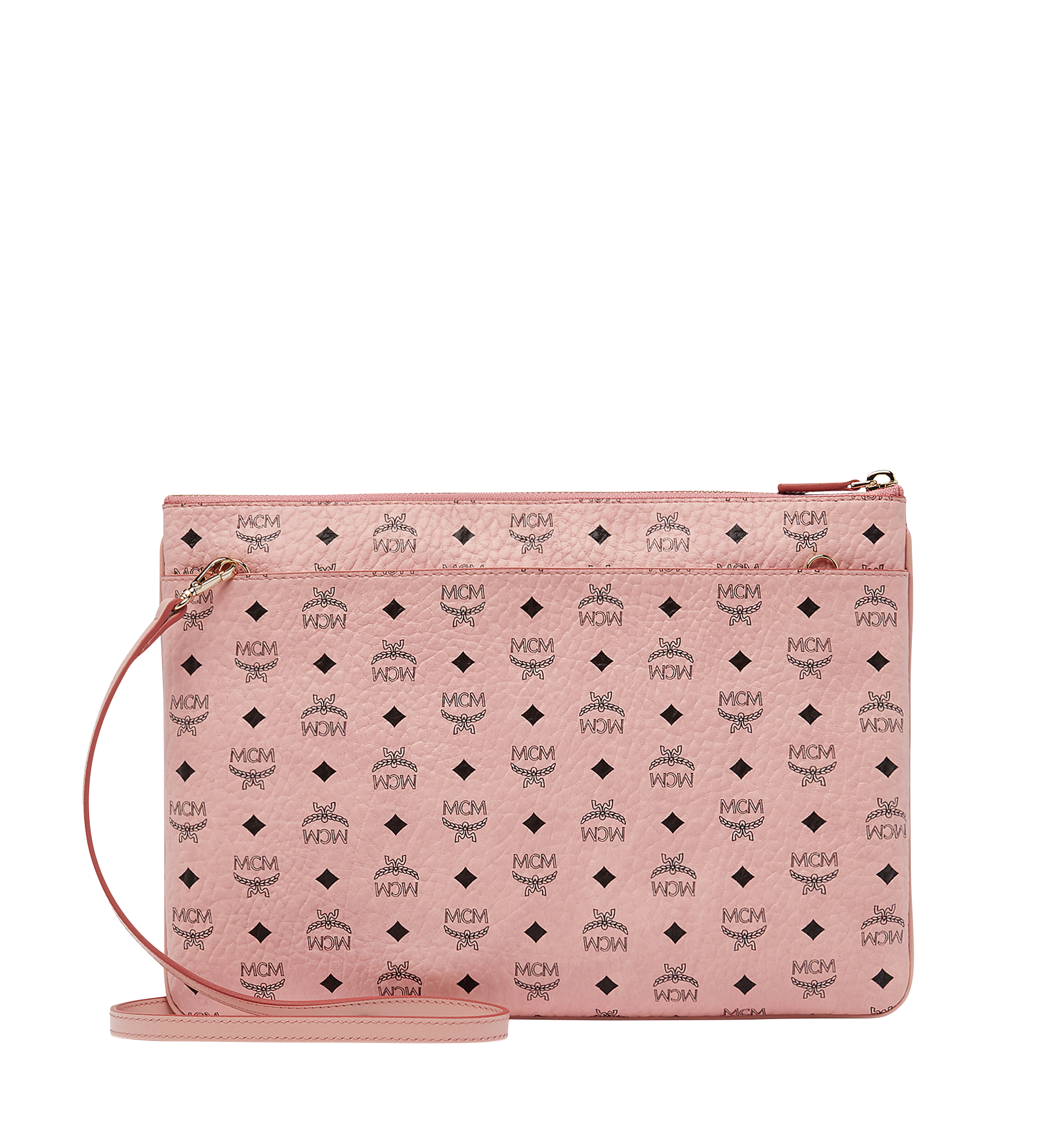 MCM Portuna Medium Visetos Powder Pink Coated Canvas Flat Pouch Crossb