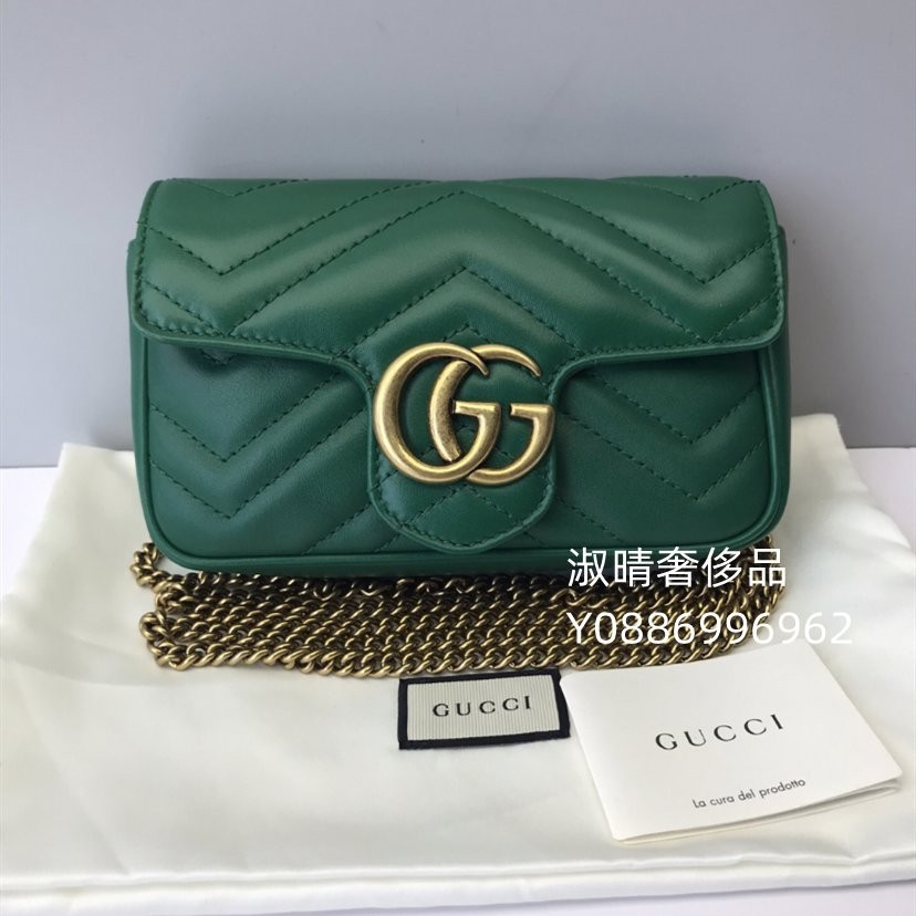 Gucci Mint Green Matelasse Leather Super Mini GG Marmont Shoulder Bag