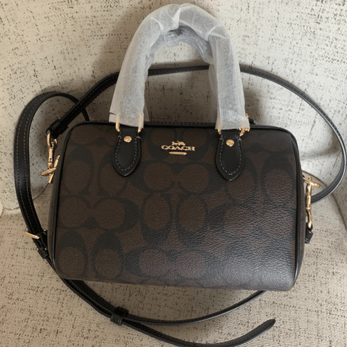 Coach Mini Rowan File Bag In Signature Canvas in Brown Black