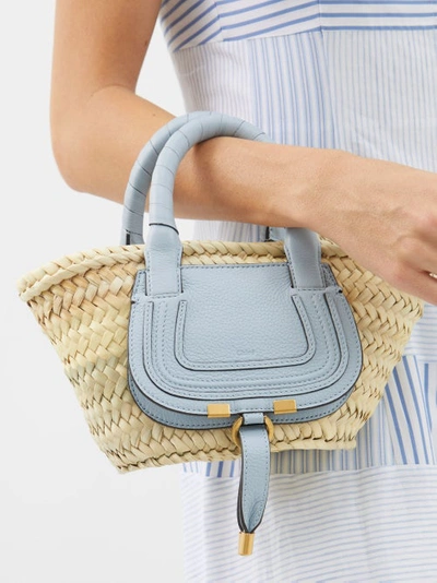 Chlo Marcie Small Raffia And Leather Basket Bag In Shady Blue