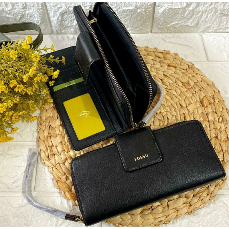 Dompet Fossil Madison Zip Clutch Black Long Wallet