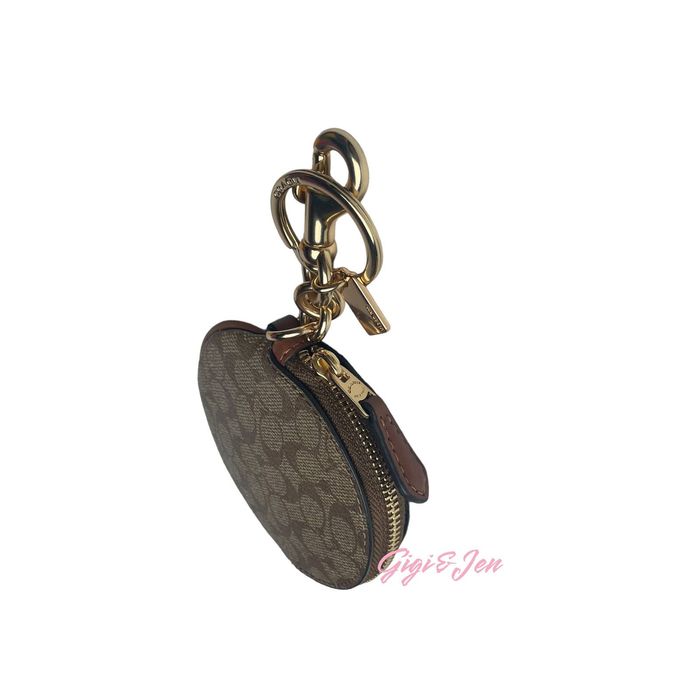 Circular coin pouch bag charm outlet in signature canvas, Coach trigger snap charm and Circular Coin Pouch Strawberry Print outlet