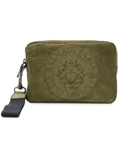 Balmain outlet wash bag, Logo Embossed Wash Bag In Green outlet