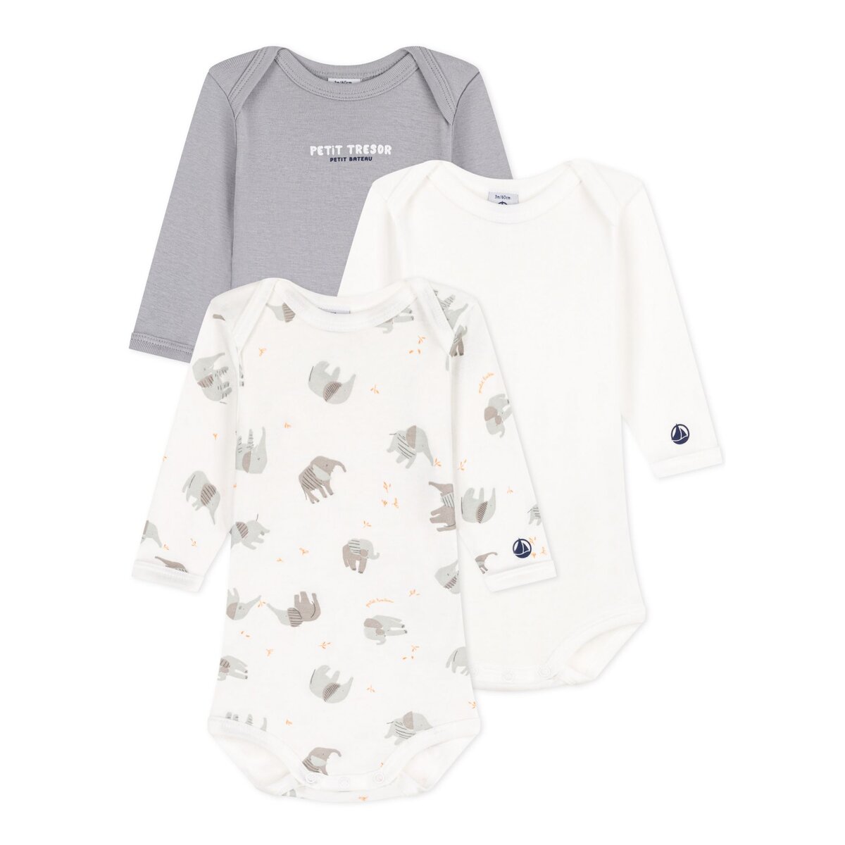 PETIT BATEAU Lot de 3 bodies manches longues b b gar on pas cher