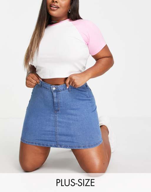 DTT Plus Clara Jupe en jean stretch taille haute Bleu
