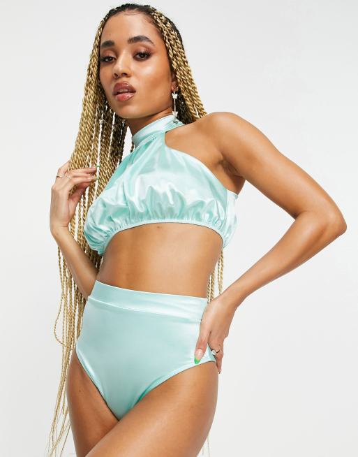 ASOS DESIGN Bas de bikini satin effet miroir taille haute Vert menthe