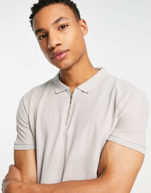 Soul Star Polo zipp en piqu Gris clair ASOS
