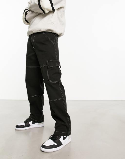 Bershka Pantalon cargo ample coutures contrastantes Noir