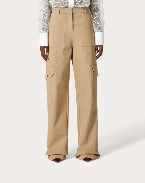 Pantalon Cargo En Toile De Coton Extensible pour Femme en Beige