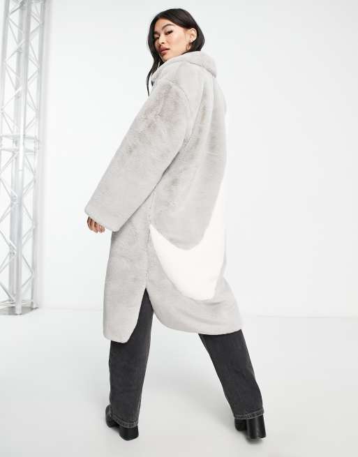 Nike Manteau long en fausse fourrure avec logo virgule Gris fer et blanc