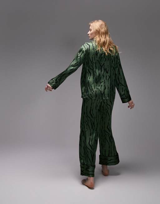 Topshop Maternity Ensemble de pyjama avec chemise passepoil e et pantalon satin imprim tigre abstrait Vert