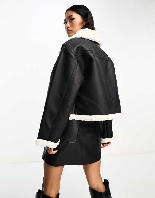 Pimkie Veste en imitation daim avec col en imitation peau de mouton Noir