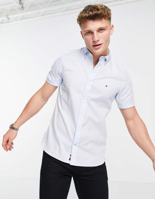 Chemise tommy hilfiger outlet manche courte, Chemise manches courtes Tommy Hilfiger bleu pour homme I Georgespaul outlet