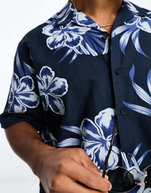 Rhythm Chemise en lin noire motifs floraux pour hommes