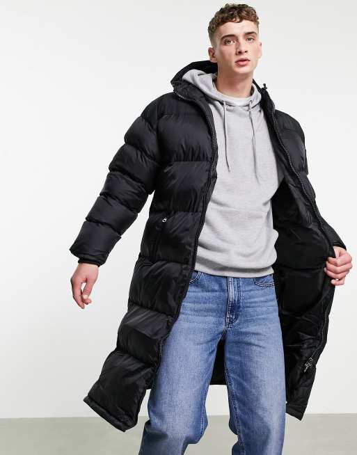 Schott 2190 MAX longline hooded puffer jacket in black ASOS