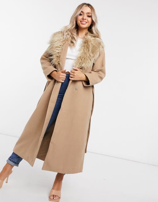 Manteau cru ceinture et d tail en fausse fourrure amovible