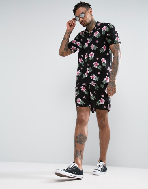 ASOS Floral Hawaiin Print Viscose Shirts and Shorter Shorts co ord