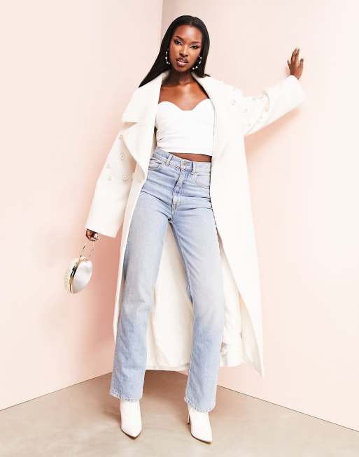 ASOS LUXE Manteau long avec perles Blanc ASOS