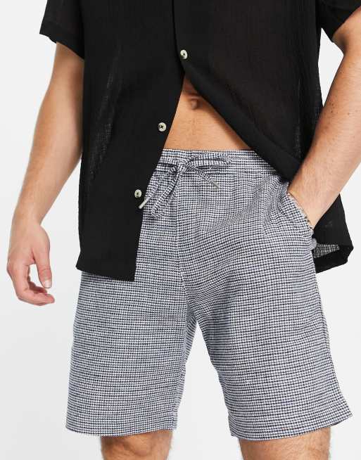 Selected Homme Short en lin m lang carreaux Bleu marine ASOS