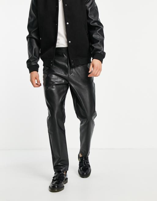 Pantalon cuir outlet noir homme, ASOS DESIGN Pantalon fusel en imitation cuir Noir ASOS outlet