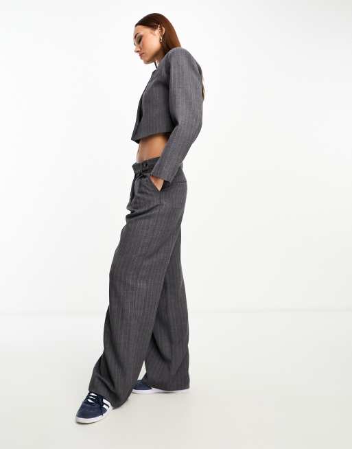 Mango Capsule Pantalon dad ajust fines rayures Gris