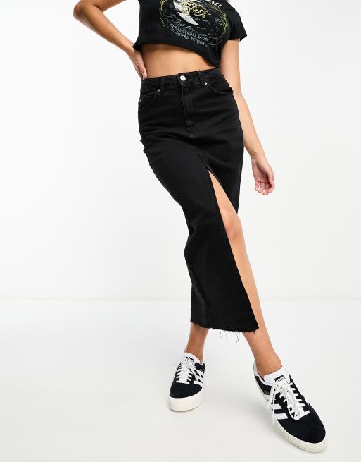 Stradivarius Jupe mi longue en jean avec fente devant Noir ASOS