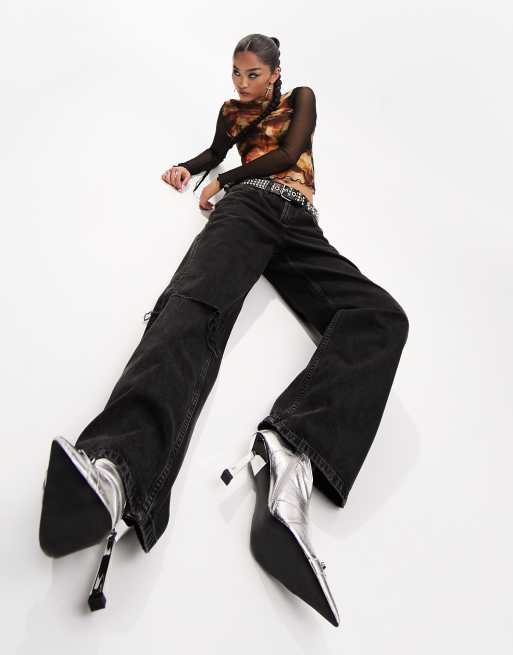 ASOS DESIGN Jean boyfriend baggy d chir aux genoux Noir d lav