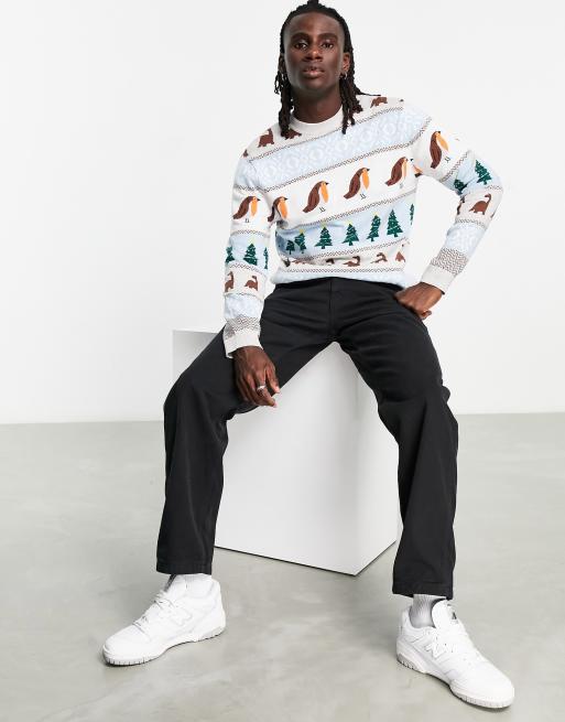 Asos pull outlet de noel, ASOS DESIGN Pull de No l en maille motif rouge gorge et outlet