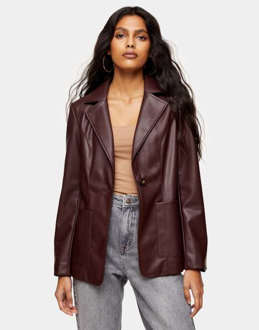 Topshop Blazer imitation cuir Bordeaux ASOS