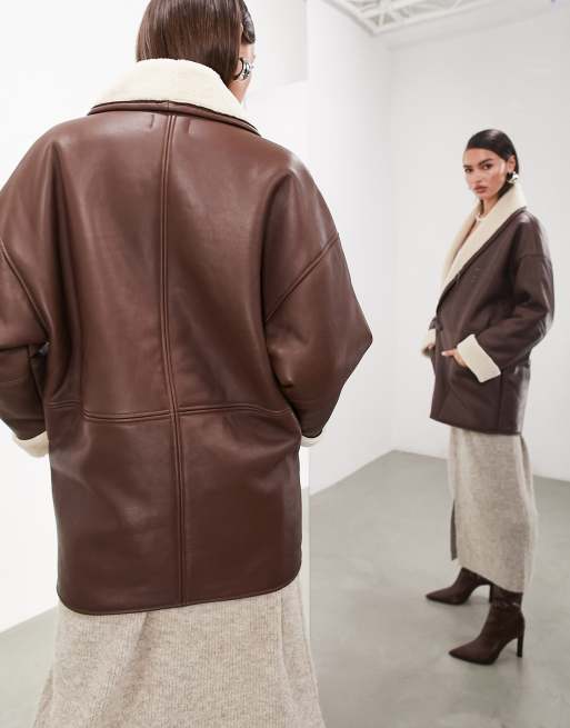 ASOS EDITION Veste oversize en cuir v ritable avec col en