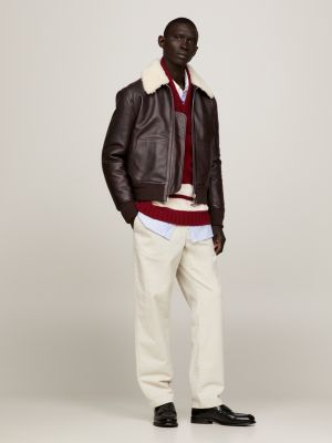 Bomber d contract en cuir col en shearling Rouge Tommy Hilfiger