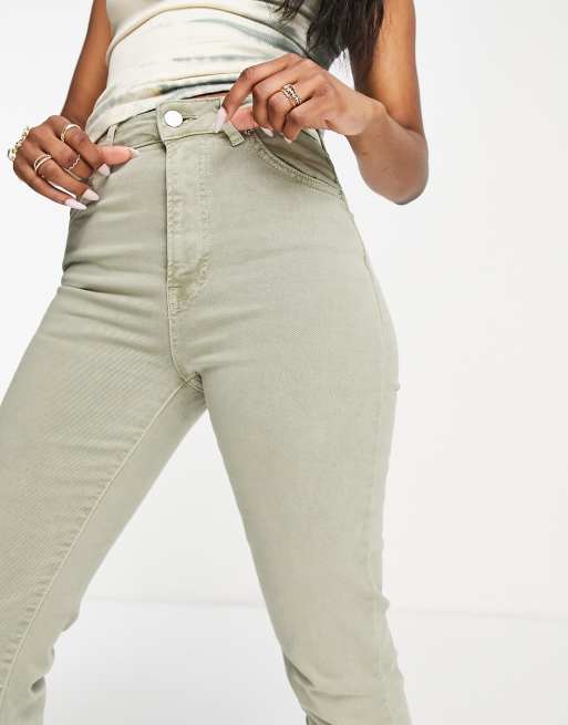 Stradivarius slim mom jean with stretch in washed khaki ASOS