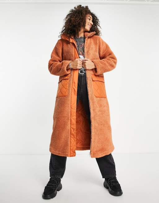 Violet Romance Manteau long en imitation peau de mouton Rouille