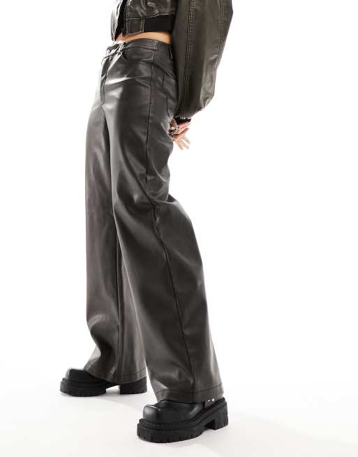 ONLY Pantalon ample en simili cuir Noir d lav ASOS