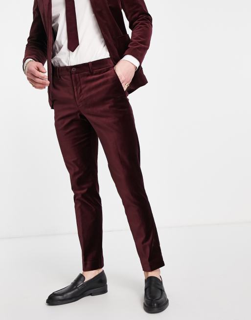 Selected Homme Pantalon de costume ajust en velours Bordeaux