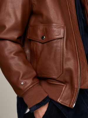 Blouson aviateur outlet tommy hilfiger, Blouson aviateur en cuir Marron Tommy Hilfiger outlet
