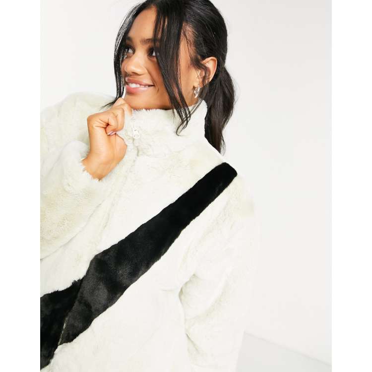 Nike Veste oversize en fausse fourrure logo virgule Cr me ASOS