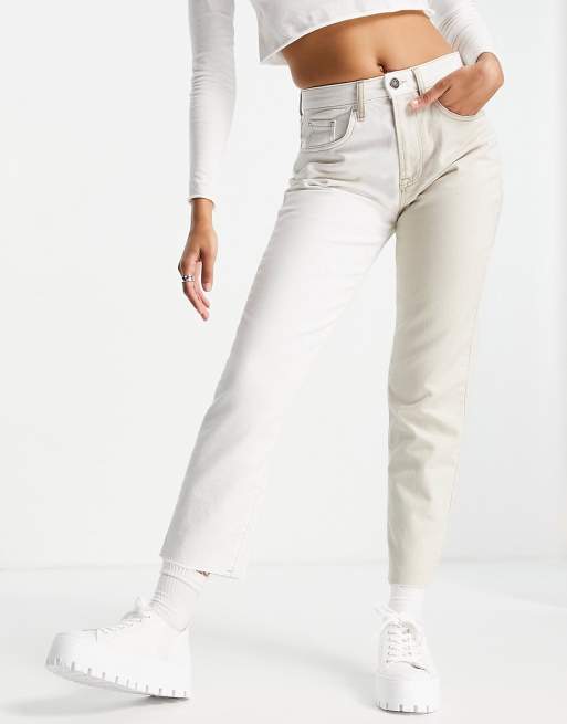 Stradivarius Jean mom bicolore contrastant cru ASOS