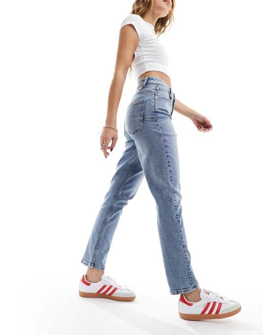 ASOS DESIGN push up slim mom jean in mid blue ASOS