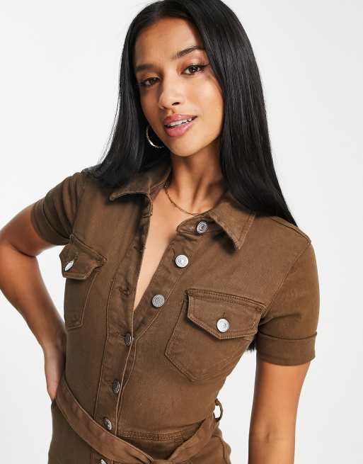 Parisian Petite Combishort ceintur en denim Kaki ASOS