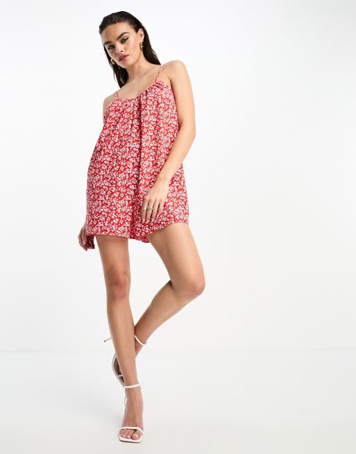 Combishort outlet rouge fleuri, Glamorous Combishort babydoll bretelles avec dos en dentelle outlet