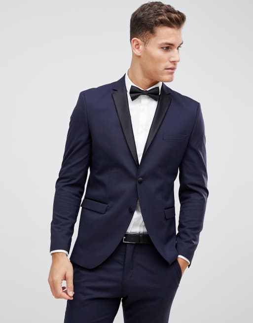 Veste outlet smoking homme, Veste Smoking crois e bleu marine revers en pointe outlet