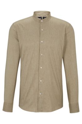 BOSS Chemise Slim Fit en tissu stretch col mao