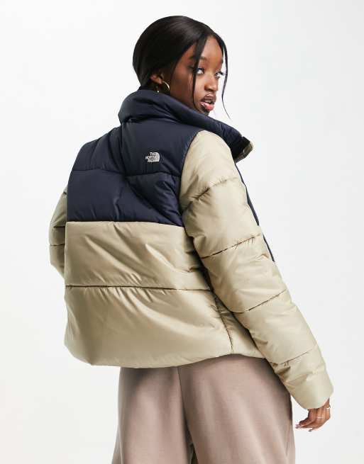 The North Face Saikuru puffer jacket in stone and black ASOS