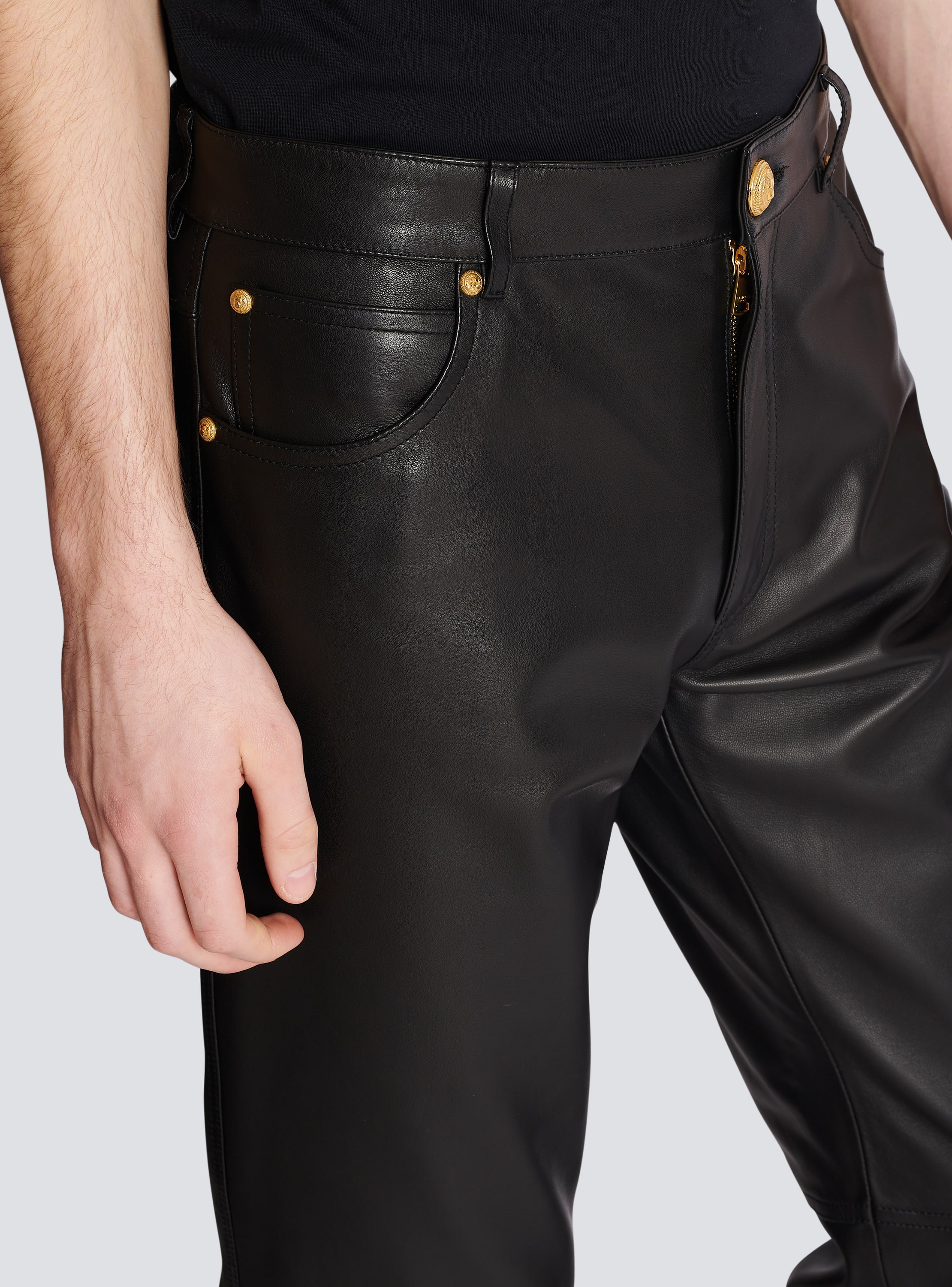 Pantalon en cuir outlet homme pas cher, Pantalon en cuir noir Homme BALMAIN outlet