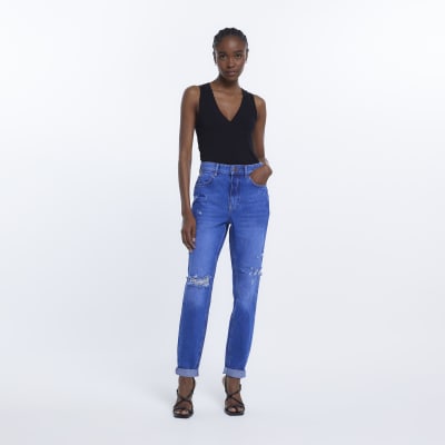 Mom outlet jeans troué, Blue ripped high waisted mom jeans River Island outlet
