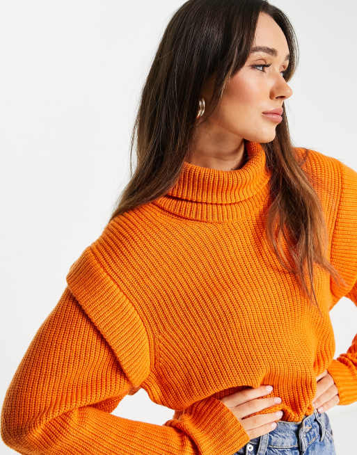 Col roulé outlet orange femme, Selected Femme Pull avec large col roul et d tail sur l paule outlet