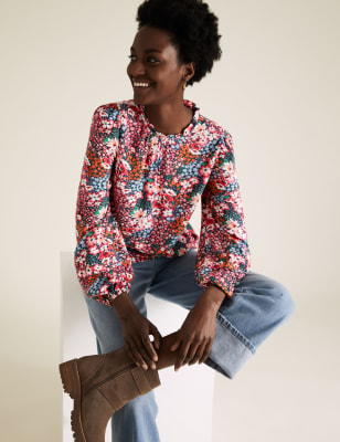 Chemisier outlet liberty h&m, Floral Frill Neck Long Sleeve Top M S Collection M S outlet