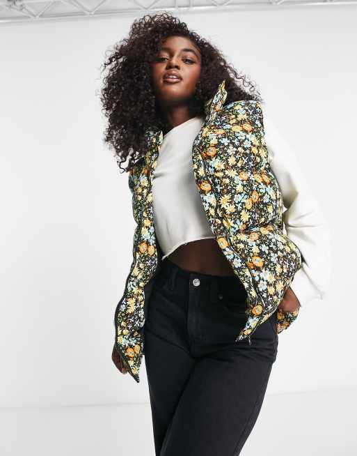 Glamorous high neck puffer gilet in cute floral ASOS