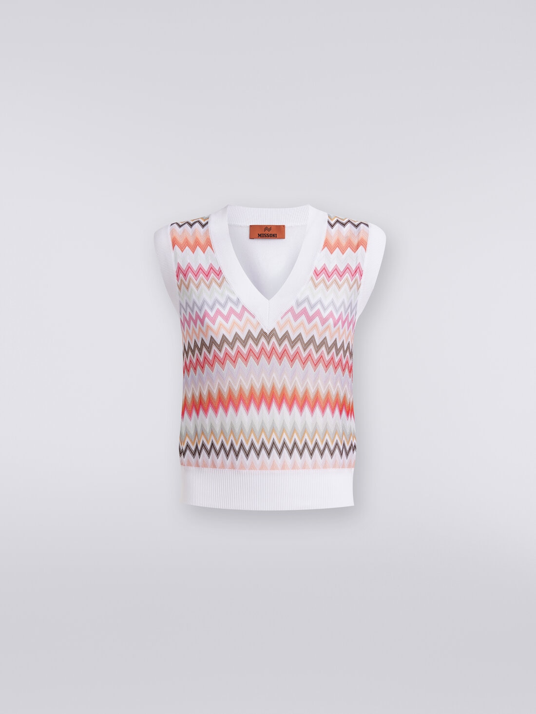 Gilet in zigzag viscose knit with contrasting trim White Missoni